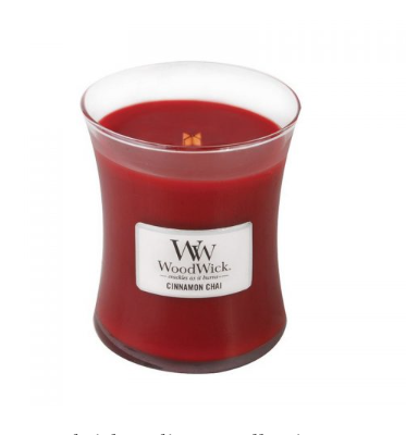 Woodwick Candle Cinnamon Chai : Leun achterover en ontspan met deze warme geur van kruidige kaneel met een vleugje vanille.